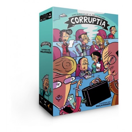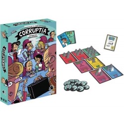 Idioma: Español. Número de Jugadores: 2 a 5. Edad: Mayores de 14 años. Duración del Juego: 45 minutos aprox. Autor: Cami Muñoz Villar, Feño Casals Caro. Ilustración: Malaimagen. En Corruptia puedes ser un Senador o Senadora. Engaña, Soborna, Compra Votos, Chantajea y Colúdete, todo esta permitido. Cualquier parecido a la realidad, es pura coincidencia. Contenido: 90 Cartas de Proyecto. 20 Cartas de Chantaje. 5 Cartas de Senador. 33 Peones. 30 Fichas de Apoyo Ciudadano. 1 Dado del Pueblo. 1 Ficha Presidencial. 1 Libreta de Apuntes.