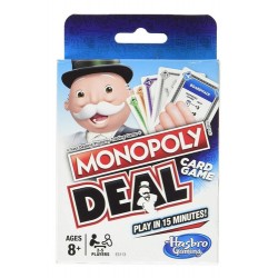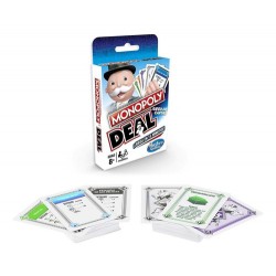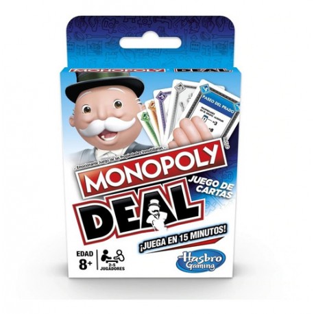 Monopoly Deal Estado:Nuevo y Sellado Idioma: Español Marca: Hasbro El juego de cartas de la marca Monopoly es toda la diversión del juego Monopoly en un juego de cartas de juego rápido. Viene con 110 tarjetas que incluyen tarjetas de propiedad, tarjetas de alquiler, tarjetas de casa y hotel, y tarjetas de propiedad salvaje. Las cartas de acción permiten a los jugadores hacer cosas como cobrar el alquiler y hacer tratos difíciles. Las tarjetas de casa y hotel aumentan los valores de alquiler. Las cartas de propiedad salvaje ayudan a los jugadores a construir conjuntos de propiedades. Y, los jugadores pagan sus deudas con tarjetas de dinero. Sé el primer jugador en ganar 3 juegos completos de cartas de propiedad en diferentes colores para ganar. Este juego de cartas es una forma ideal de jugar al juego de intercambio rápido de propiedades en tan solo 15 minutos. Los nombres y logotipos de Hasbro Gaming, los hermanos Parker y Monopoly, el diseño distintivo del tablero de juego, los cuatro cuadrados de las esquinas, el nombre y el personaje de Mr. Monopoly,