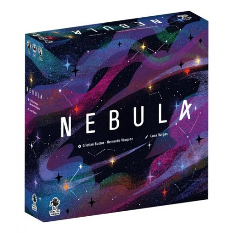 Tienda Diverti Idioma Español Número jugadores 2 a 4 Se dice que por cada persona que ha habitado la Tierra, hay más de una estrella que brilla en el universo... En Nebula deberás recolectar estrellas para posicionarlas en tu galaxia. Las estrellas se presentan en diversas etapas, desde gigantes rojas hasta enanas blancas, las cuales podrás conseguir desde los cúmulos estelares. Podrás obtener estrellas invirtiendo Tiempo o acudiendo al Caos. Luego deberás posicionarlas en alguna orbita y constelación respetando la ley de gravedad. Finalmente, habrán objetivos, tanto personales como compartidos, que podrán recompensarte, y también algunas estrellas sin resplandor que nos harán recordar que la muerte es parte de la vida estelar. Dale vida a tu Galaxia y encuentra la armonía dentro de tus constelaciones. Las historias que se inventarán mientras las observas perdurarán en el tiempo...