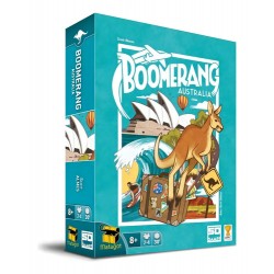 ¡Bienvenidos a Boomerang! En este juego viajaréis a Australia, donde intentaréis ver y hacer todo lo posible antes de que terminen vuestras vacaciones. Obtendréis puntos por avistar animales autóctonos, coleccionar piezas australianas y realizar diferentes actividades vacacionales. En cada ronda, los jugadores seleccionarán cartas e irán anotando logros en su hoja de puntuación. Al final de la partida, el mejor viajero será el ganador. ¡Disfrutad del paisaje! Español 30 Minutos De 2 a 4