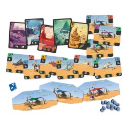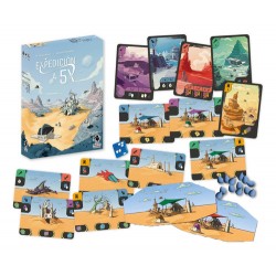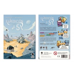 Tienda Diverti Idioma: Español Número de Jugadores 3 - 5 Nuestro planeta natal ha sido destruido. En una búsqueda desesperada por un nuevo hogar hemos encontrado el Planeta 5X. Es un lugar desértico, el agua es escasa y no somos los únicos que llegaron aquí. Tendremos que luchar con los demás clanes para abastecernos. Excavando en búsqueda de pozos, descubrimos algo asombroso: tecnologías de una civilización antigua abundan en el planeta. Se trata de ingeniosas construcciones que mejorarán nuestras habilidades y nos ayudarán a obtener la victoria. Nos enfrentaremos entre distintos clanes durante 15 rondas. En cada ronda elegiremos una acción: podremos Excavar tecnologías antiguas, Explotar el agua de los oasis, Exterminar a nuestros oponentes, Explorar el territorio o Expandir nuestras posibilidades. El clan más avanzado conseguirá la victoria.
