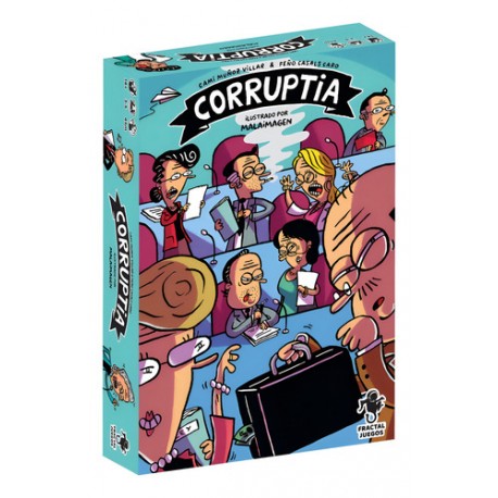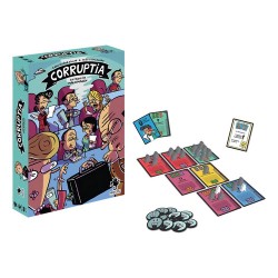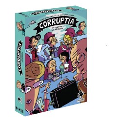En CORRUPTIA, los jugadores asumen el papel de Senadores que buscan aumentar sus riquezas en lugar de velar por el bienestar del Pueblo. Durante cada ronda, los Senadores tratarán de aprobar los Proyectos de Ley que más les beneficien, sumergiéndose en intensas negociaciones que incluyen la compra de votos a través de chantajes, sobornos, mentiras y diversas estrategias. Componentes: - 90 cartas de Proyecto de Ley - 20 cartas de chantaje - 5 cartas de Ayuda - 5 tableros de Senador - 33 trabajadores - 30 fichas de Apoyo Ciudadano - 1 dado del Pueblo - 1 ficha Presidencial - 1 libreta de puntaje - 1 Reglamento Ilustrado por Mala imagen, esta segunda edición del juego de mesa chileno ofrece una experiencia mejorada.
