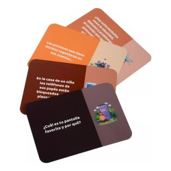 Tienda Diverti Material diseñado para ayudar a prevenir y abordar problemáticas de sobreexposición y adicción a las pantallas en niños y adolescentes. A través del juego se abre el diálogo para educar, analizar y reflexionar sobre las conductas poco sanas, y en algunos casos, adictivas en el uso de la tecnología, en las que pueden incurrir los niños y jóvenes. El juego, además permite explorar, identificar y conocer los factores y efectos emocionales, físicos, de relaciones sociales y culturales involucrados en el uso de pantallas. Esto ayudará a crear una relación más positiva, informada, crítica y menos problemática con el uso de pantallas. Edad: 9+ años Elementos incluidos: 55 cartas + 1 instructivo