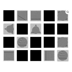 Tienda Diverti Este es un memorice abstracto muy particular que será un exigente pasatiempo. Intenta encontrar todos los pares de cartas en el menor tiempo posible No te dejes engañar. 1 persona 15 min. +5 años Objetivo: Busca los pares de cartas iguales para resolver este memorice visual con estilo op-art. Componentes: – 24 losetas
