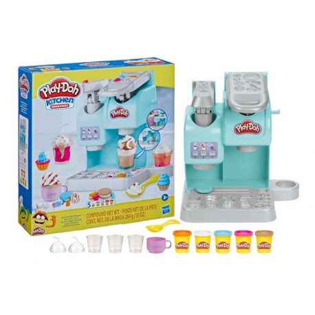 Tienda Diverti Marca: Play Doh ¡Da rienda suelta a tu imaginación con el set de juego de la Super Cafetera de Colores! Este set de juego de cafetería permite a los niños y niñas imaginar bebidas creativas de Play-Doh a su manera. Haz que la cafetera de juguete llene las tazas con masa de modelar Play-Doh de colores, luego gíralas y deslízalas hasta la zona de decoración y enggañade nata montada falsa. Crea montones de productos de repostería de plastilina de colores con los moldes de galletas, magdalenas y rosquillas y exponlos en el mostrador transparente. Tanto si preparan café, té, batidos o simulacros de batidos de plastilina, jugar a ser barista asegurará la diversión de niños y niñas. Este juguete de creación de bebidas Kitchen Creations, diseñado para niños y niñas a partir de 3 años, también contiene 8 botes de plastilina y 20 accesorios para despertar la imaginación de los más pequeños.