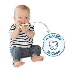 Con varias texturas ofrece diferentes masajes y alivia eficazmente las encías doloridas del bebé. Sano y natural, este mordedor se fabrica con caucho 100% natural.